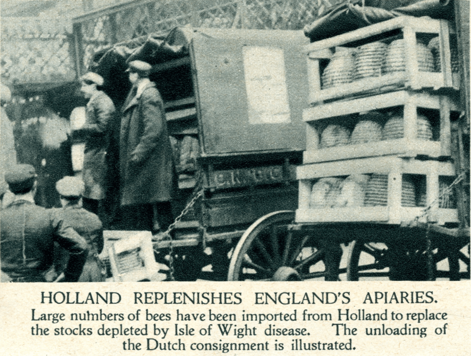 In 1913 Bee-Mason was involved in another film ‘Life of a Bee’. He is credited as being a ‘cast member’. That same year he appeared for a run of five weeks at the London Opera House narrating one of his films. It was probably in late 1913 that Bee-Mason visited Holland where he purchased 500 colonies of Dutch Bees. As the cargo was considered ‘dangerous’ a ship had to be chartered to bring them to England. One of the reasons for this live-import was because many English hives at that time had been affected by what was known as ‘Isle of Wight disease’.