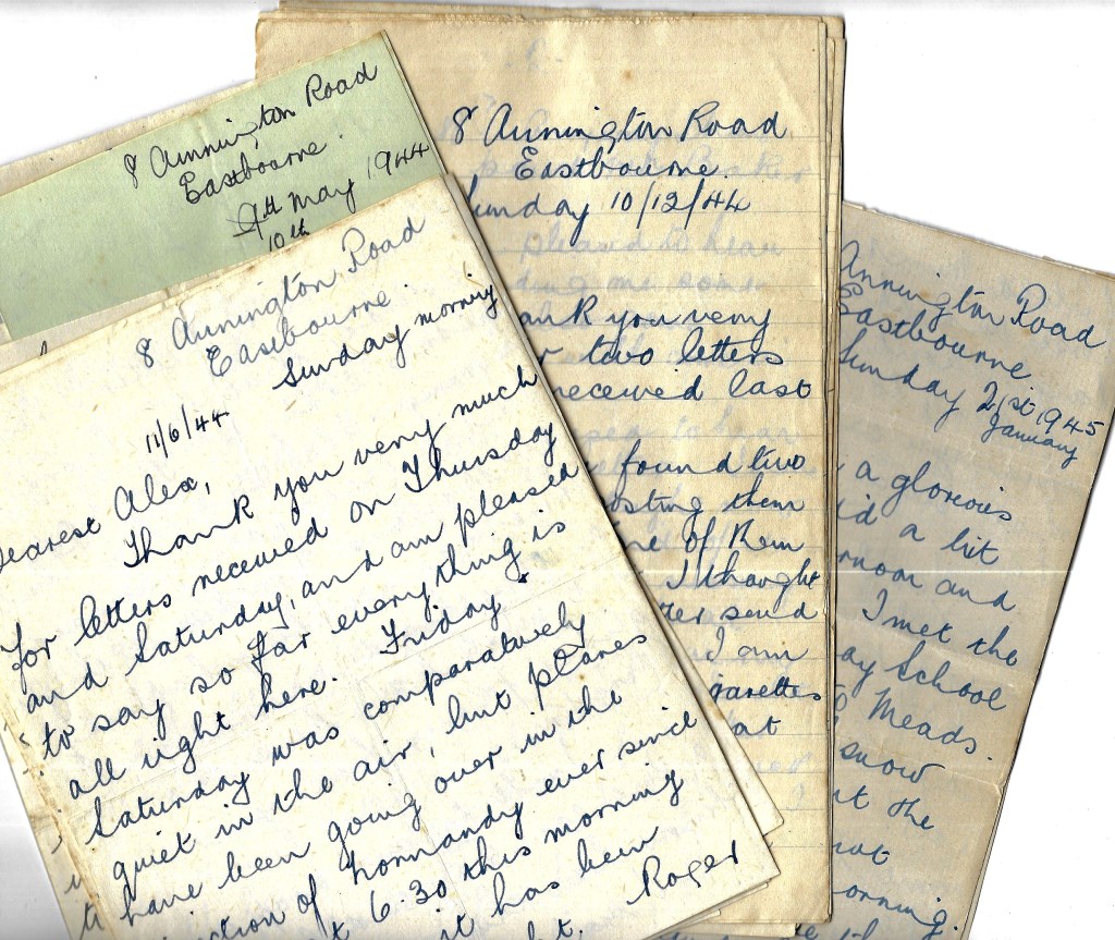 During 1944 Bessie lived in Eastbourne on her own at 8, Annington Road. The letters cover the period around the time of the D-Day landings and refer to the ‘Doodlebug’ attacks on the town.