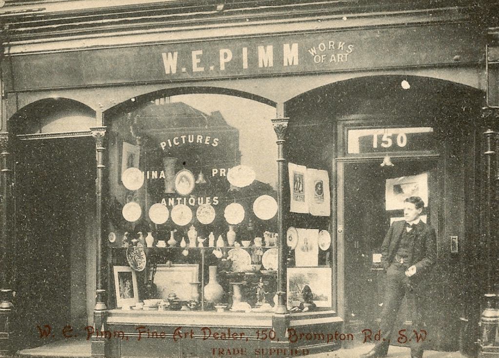 William ran an art shop in Brompton Road, Kensington, just across the road from Harrods. The shop sold ‘pictures, prints, china and antiques. The photo shows him at the door.