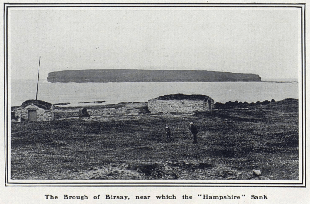They were due to sail to Russia where Kitchener was to negotiate with the Russians and as Oswald Fitzgerald spoke fluent Russian he naturally accompanied his friend and senior officer. A few days before they set sail, Fitzgerald visited some friends in the Orkney Islands and, struck by the beauty of the seascape, remarked that the rugged Scottish coast was “the type of place that a man could wish to die in”. His companion tried to correct him by saying “A place to live in rather!” but Fitzgerald replied by saying “No” noting the stately grandeur of the sea. Fate seemed to grant his wish.