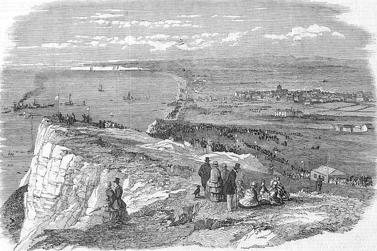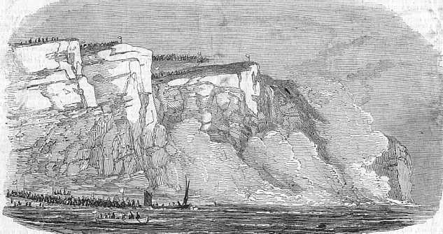 People travelled from all the nearby villages and towns and roads were blocked with “numerous carriages, gigs, flys and carts”.  The pubs and restaurants of Seaford must have had a very profitable day although by 2pm most people were vying for position along the beach. Over 10,000 people packed the shoreline around Seaford Bay with thousands more on Seaford Head cliffs and even some in the water. Thousands also climbed the cliffs at Newhaven three miles away, but the richest visitors hired boats to view the event from the sea. Among these vessels was HMS Widgeon which was commanded by Captain Bullock and it is also rumoured that Charles Dickens managed to find a boat in which to view the spectacular event.