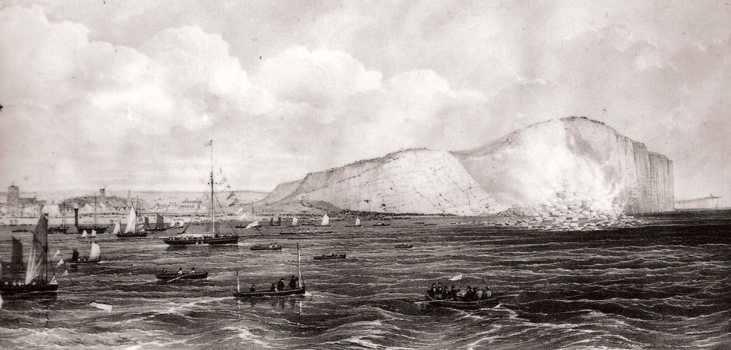 The great Seaford Explosion was covered by the “Illustrated London News” which contained a detailed account and three engravings. (produced here) However, even this article, published just a week later, reported that much of the 380,000 tons of chalk which had been displaced was already beginning to get washed away by the strong tides.