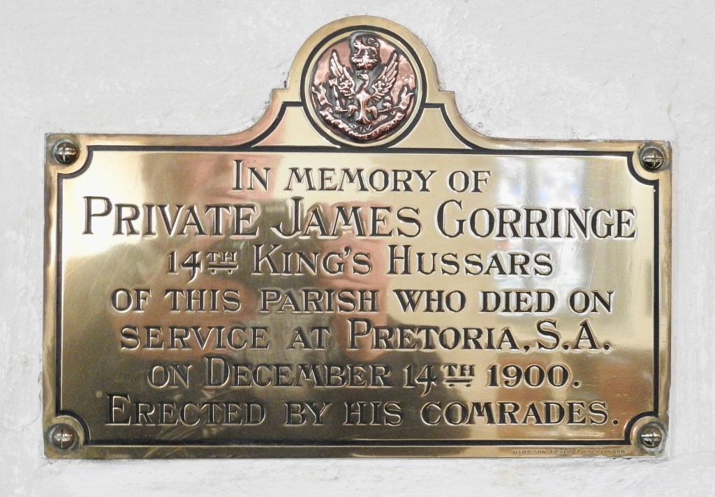James died aged 37 years on 14th December 1900. The news of his death was received at home in Eastbourne by Christmas. A Memorial Service was held at Holy Trinity Church 30th December and a few weeks later a brass memorial was fixed to the south aisle of St Mary’s Church where it can still be seen today.