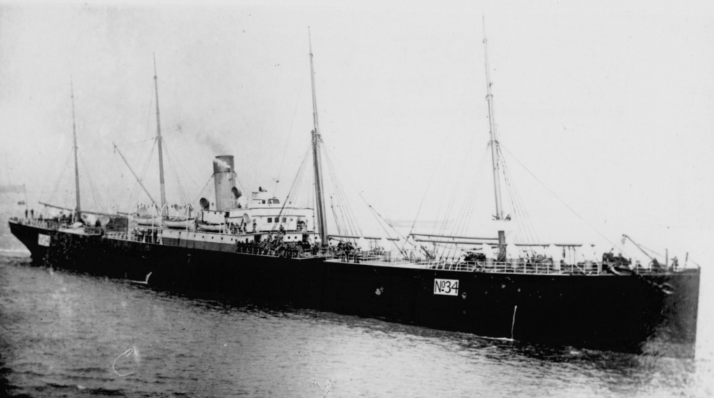 James had spent many years in the 14th King’s Hussars. (the nickname of which was the Emperor’s Chambermaids!) As an army reservist, James was liable to be called up for military service and this occurred in 1900 when he joined the At this time the Hussars were in action during the Second Boer War. This was a conflict aimed at removing Dutch-descended Boers from the mineral-rich South Africa. Heavily outnumbered by British troops, the Boers started a guerilla war. The British countered this by a ‘scorched earth’ policy of destroying Boer held farmsteads and imprisoning tens of thousands of civilians in Concentration Camps. This is the South Africa that James arrived in, onboard HM Transport Ship 34, a.k.a. SS Nomadic on Sunday 24thJune 1900.
