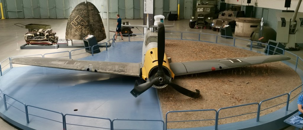 I was reminded of the war over Sussex when I recently visited the Imperial War Museum at Duxford in Cambridgeshire. I was interested to see a German Messerschmidt fighter-plane on display. It seemed to be pretty much intact apart from its bent propellors. The adjacent information sign recorded that it had crash-landed in Sussex during the Luftwaffe’s last major daylight raid on London in September 1940.