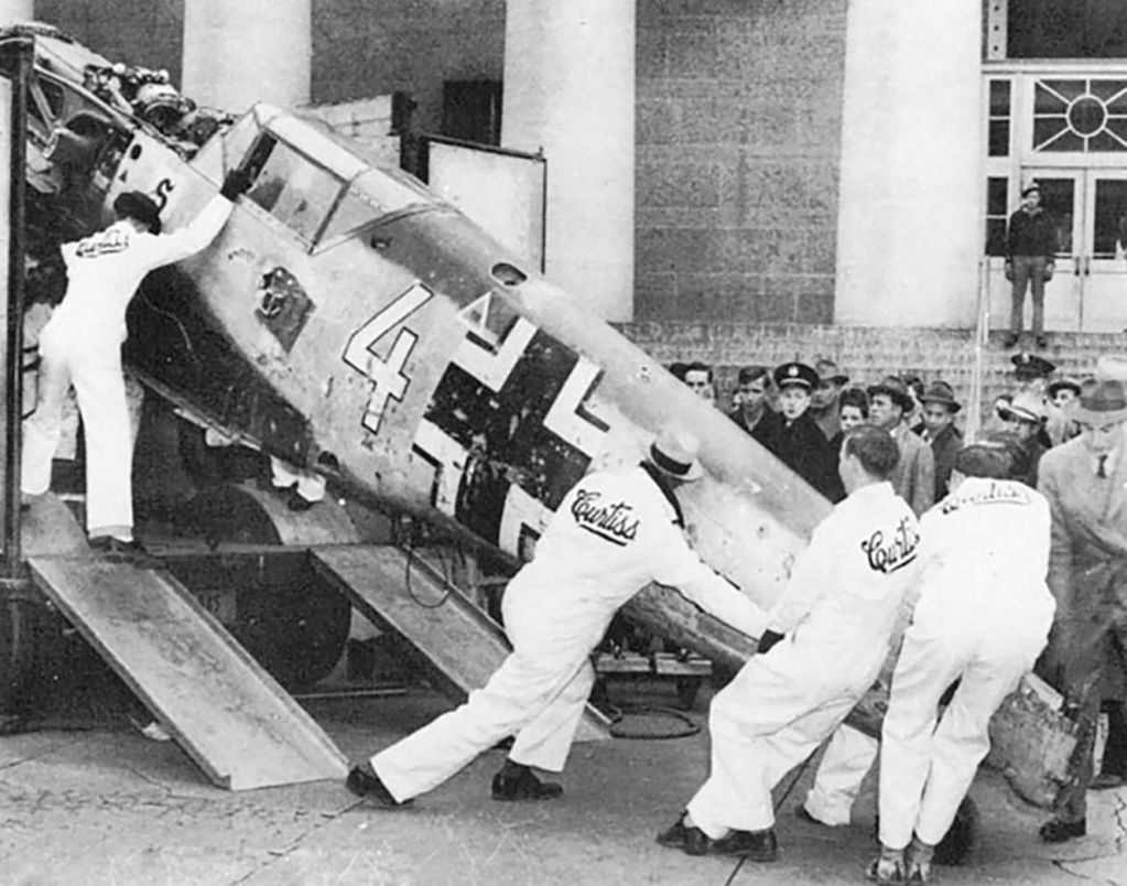 White 4 was to go on a remarkable journey. It was shipped to Nova Scotia in Canada early in 1941 in order to raise funds for the war effort. At that time there was a North American campaign called ‘Bundles for Britain’. Among the British supporters were the Queen and the Prime Minister’s wife and some say that it was Clementine Churchill’s idea to have White 4 used to raise awareness of the war to the Americans. The plane was taken by rail to New York to be displayed in July 1941 and people who donated money could not only get to see the plane but were also allowed to scratch their names on the fuselage. It appeared in several North American cities after this and probably raised many thousands of dollars.