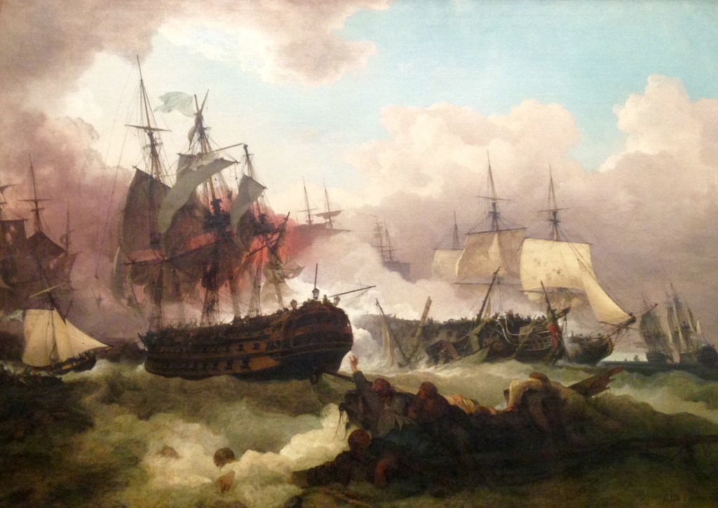 The Monmouth engaged the Dutch frigate Monnekendem and, under Walker’s command, the enemy ship was severely damaged and eventually sunk. It is recorded that Walker’s ship lost ‘one Petty Officer, one Seaman, two Marines and a boy’ during the battle.