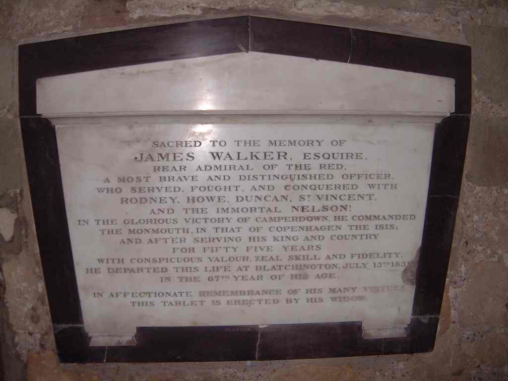 Walker was appointed Rear Admiral of the Red, a post once held by Nelson, but died in Seaford in 1831. He was buried in the large box-tomb in the church yard of Seaford’s parish church. It is decorated with anchors and tridents. He is also commemorated under the tower inside St. Leonards church.