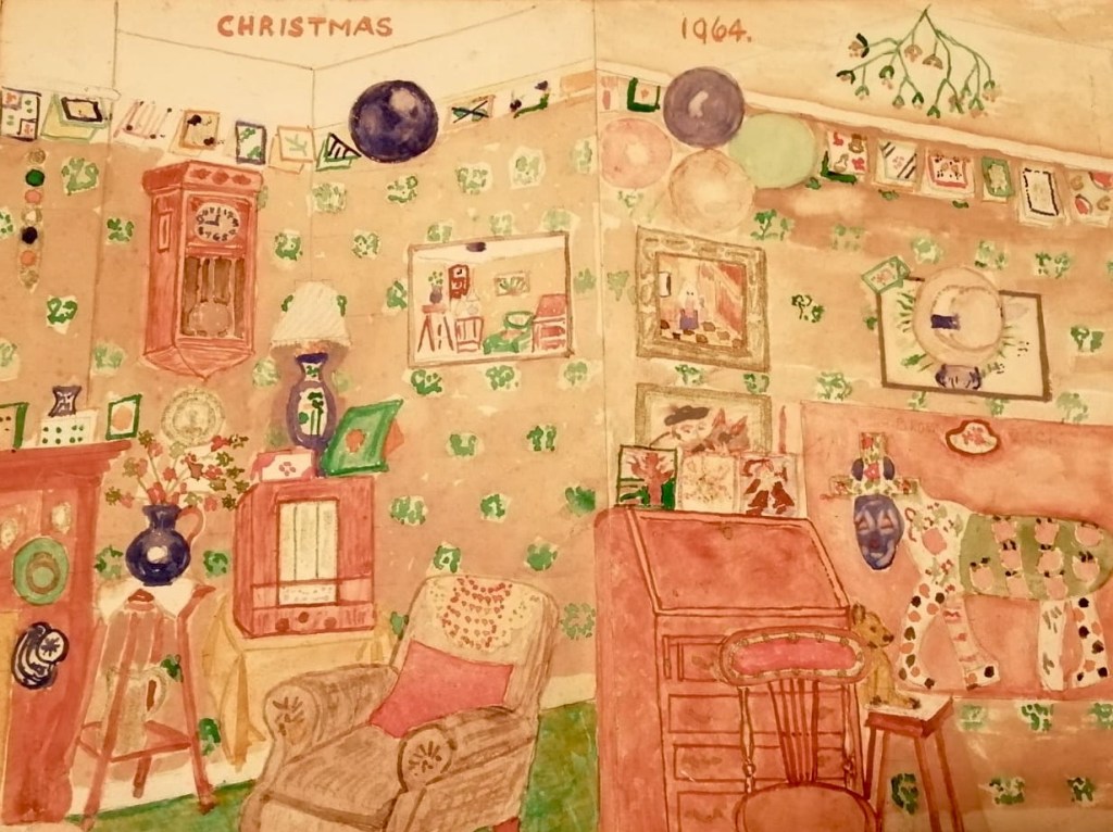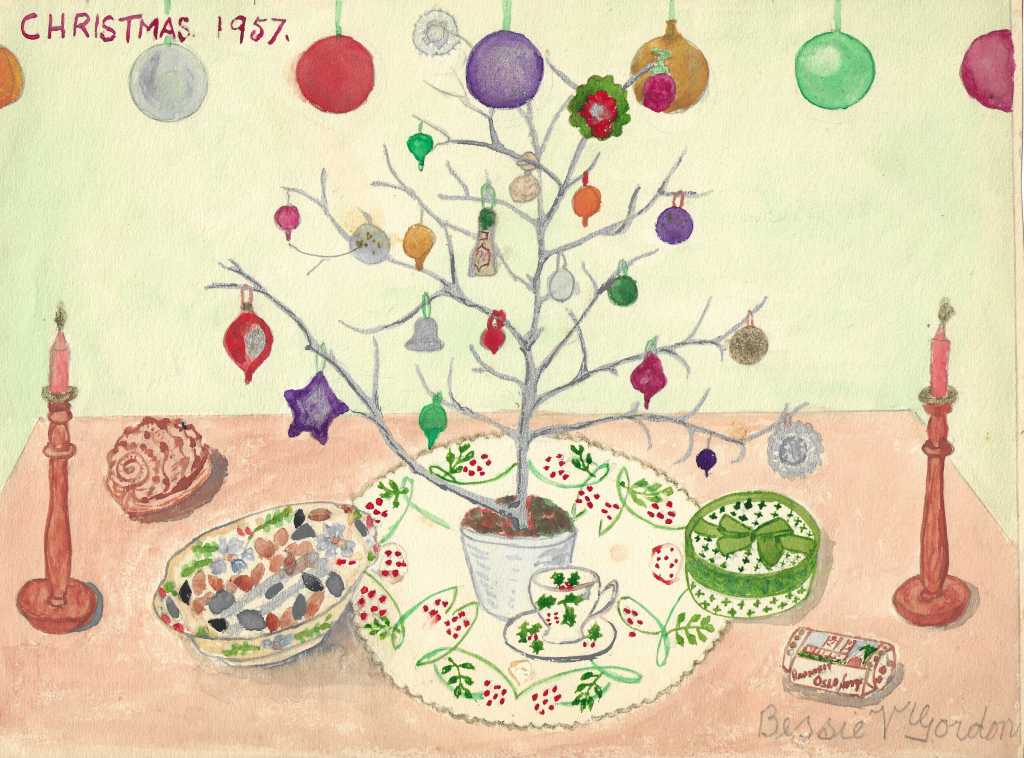 My grandmother, Bessie loved Christmas and I am lucky that I not only have her diaries but paintings, drawings and photographs too. She lived at 8, Annington Road, Eastbourne with her disabled husband Alex, who had lost a leg during the Great War.